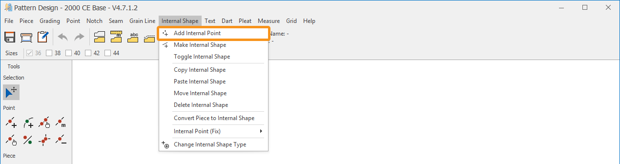 1.) In the Pattern Design screen, click Internal Shape > Add Internal Point ![]()