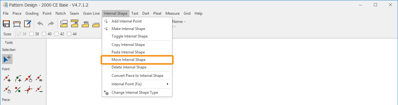 1.) In the Pattern Design screen, click Internal Shape > Move Internal Shape ![]()
