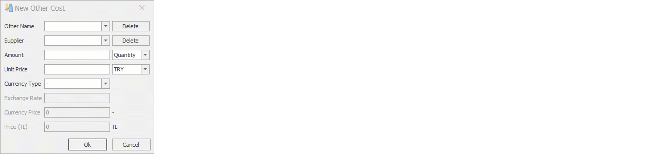 - In the Currency field, select the currency type if the cost calculation will be made in a different currency.