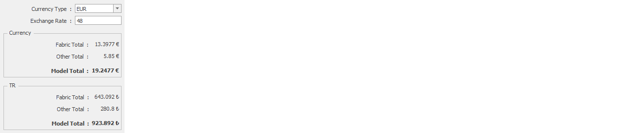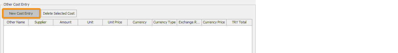 The total of all entered costs is displayed in the left column of the costing screen in both TL and foreign currency.