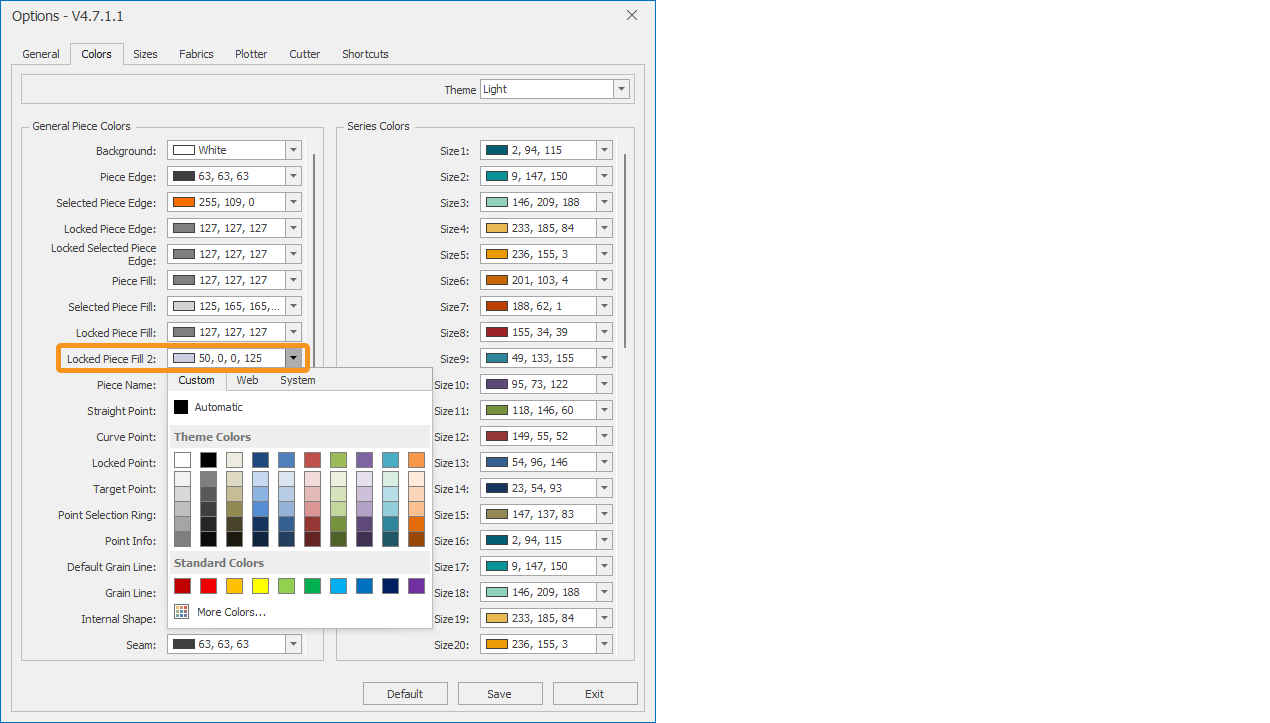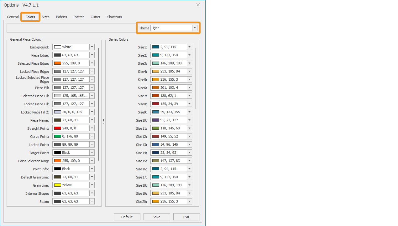 DesignCad offers three main themes, and you can select your desired theme from the Options/Colors tab.