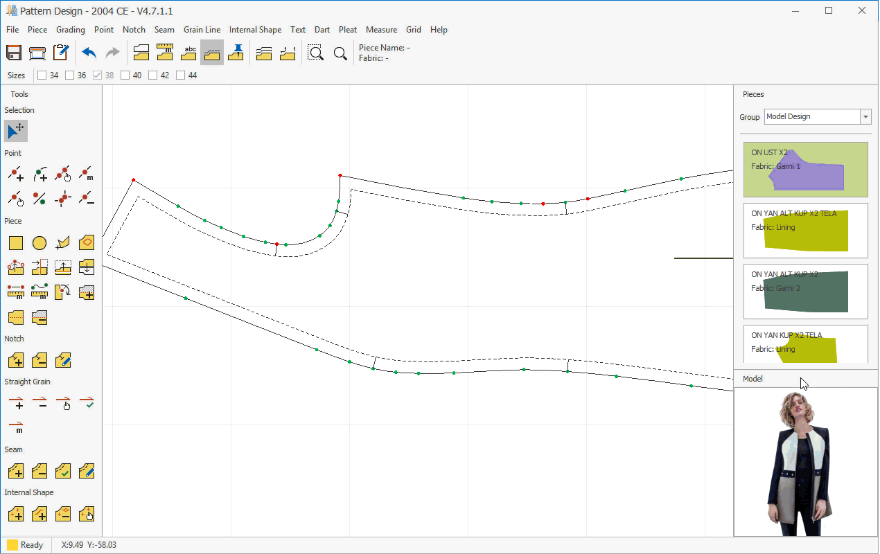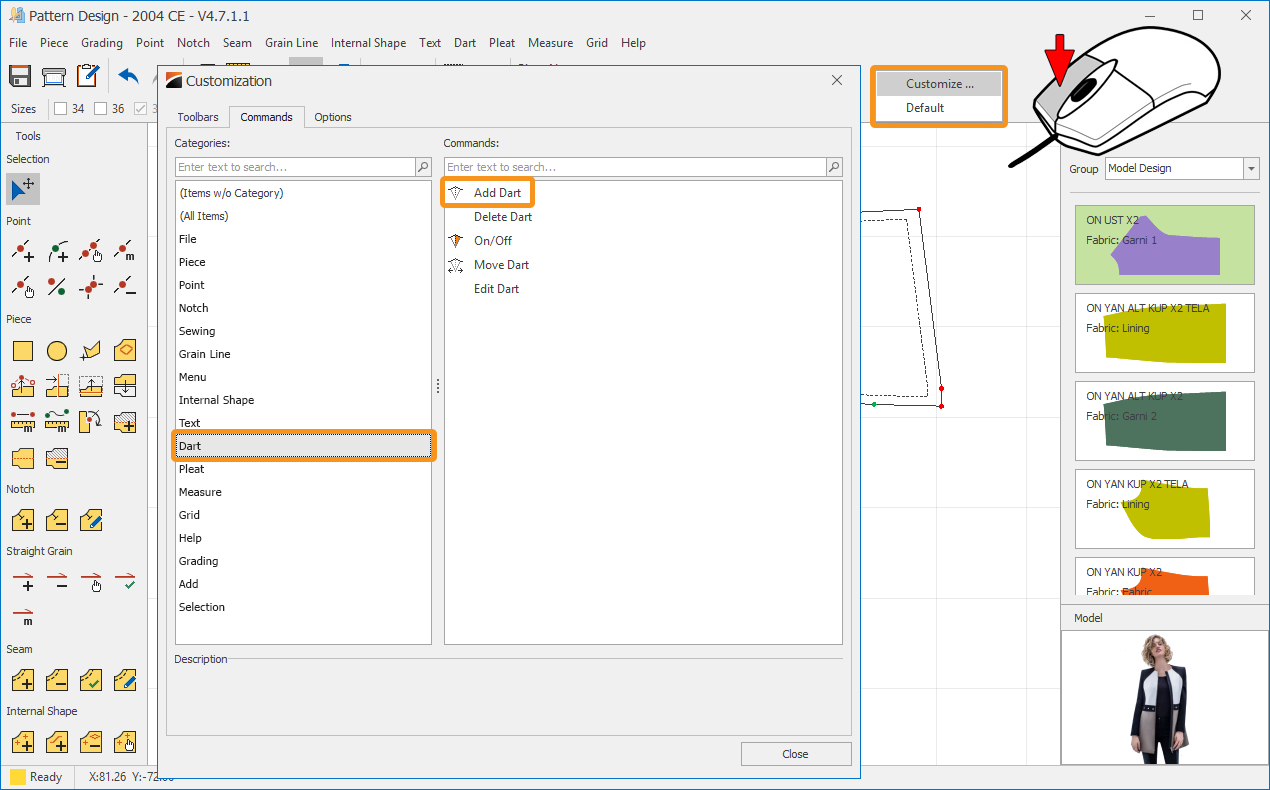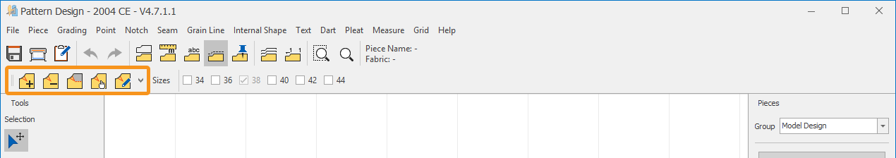 If you prefer, you can rearrange the toolbars (Tools, Parts, and Model View) in the Pattern Design and Marker Design screens according to your workflow. You can move them to any position on the screen and resize them by dragging the corners with your mouse.