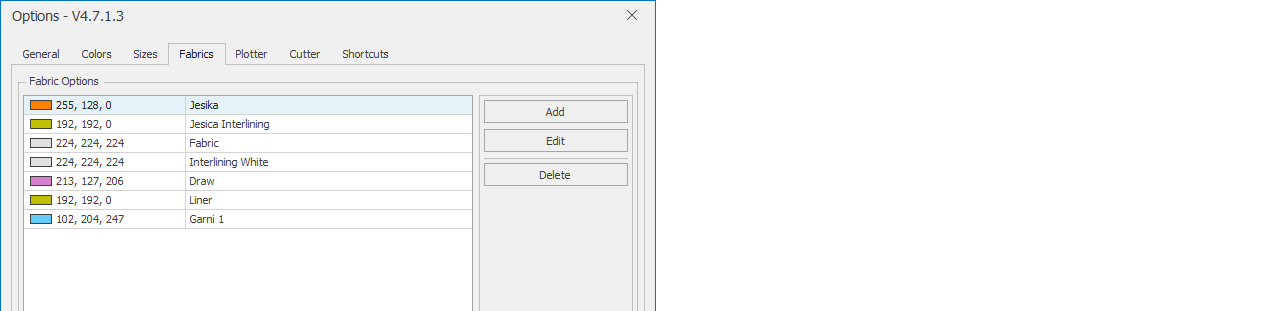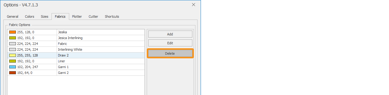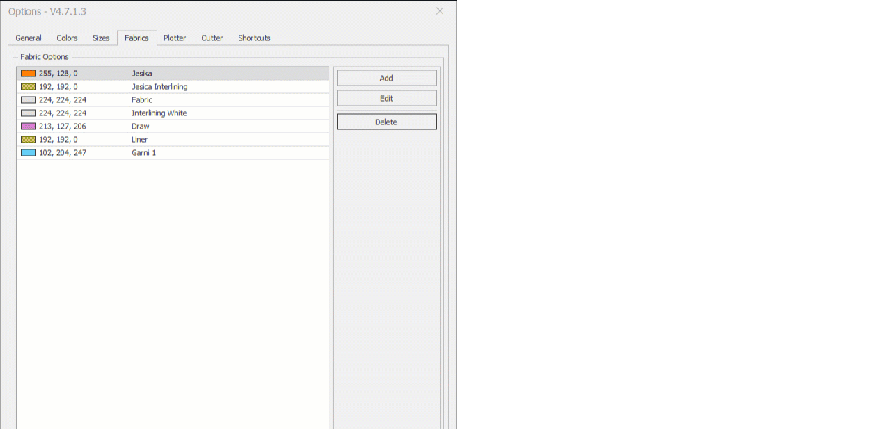 To add a fabric to the library, click the Add button.
