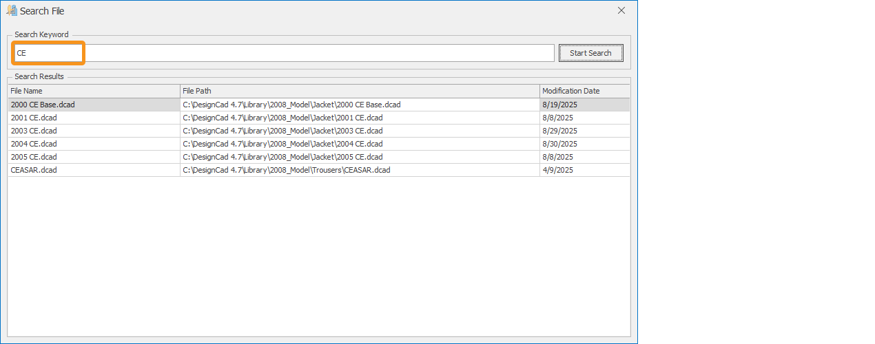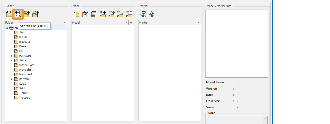The searched model file can be opened in the Pattern Design screen by double-clicking on it with the mouse.