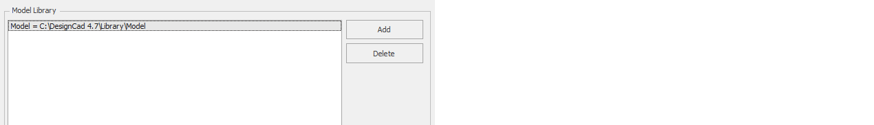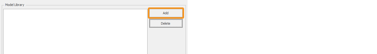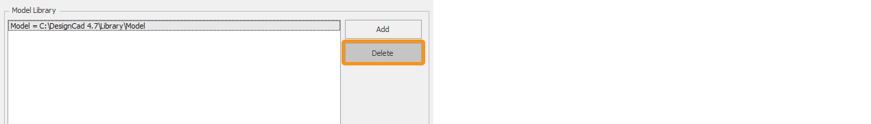 The added model libraries can later be selected from this section and deleted using the Delete button. (Deleting the library path does not delete the model files.)