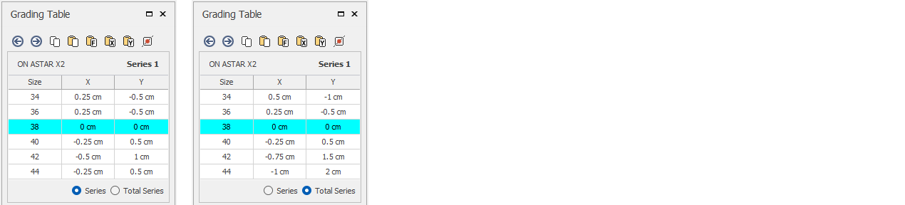 Accumulative Grading: When checked, the distance of each size from the base size is reflected in the table.