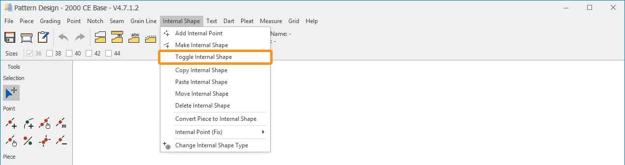 1.) In the Pattern Design screen, select Internal Shape > Toggle Internal Shape ![]()
