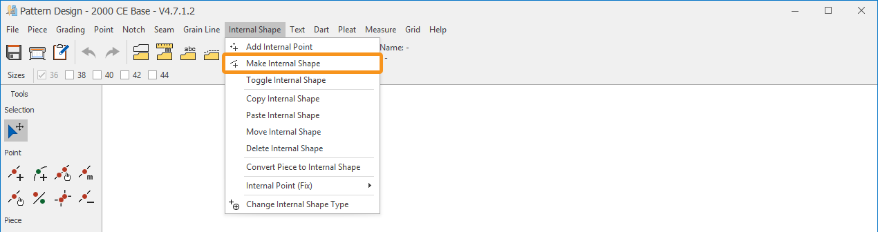 1.) In the Pattern Design screen, select the piece in which the internal shape will be created.