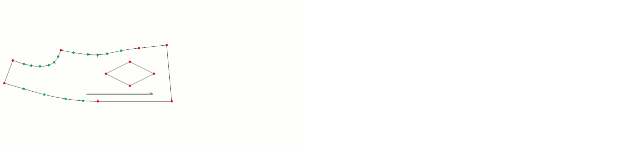 - Add a corner point (red) with the left mouse button, or a curve point (green) with the right mouse button, to form the internal shape.
