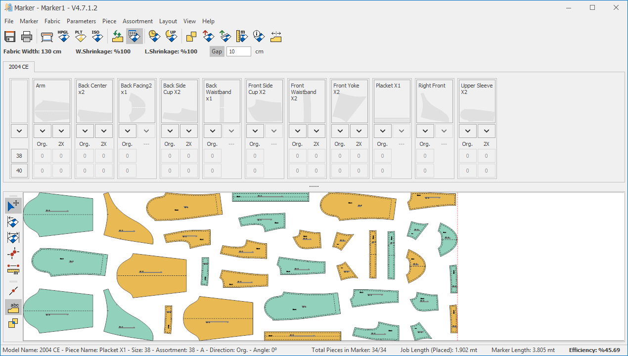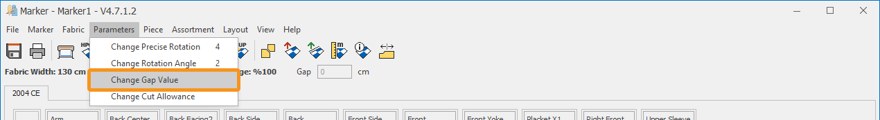 In the Marker screen, this function is used to enter the gap value to be applied between two pieces during manual placement.