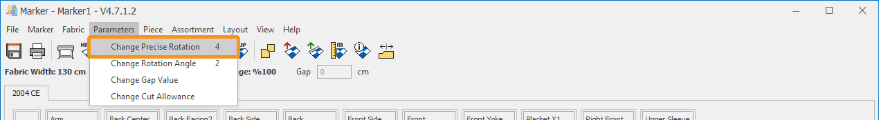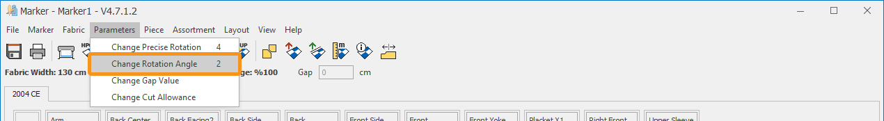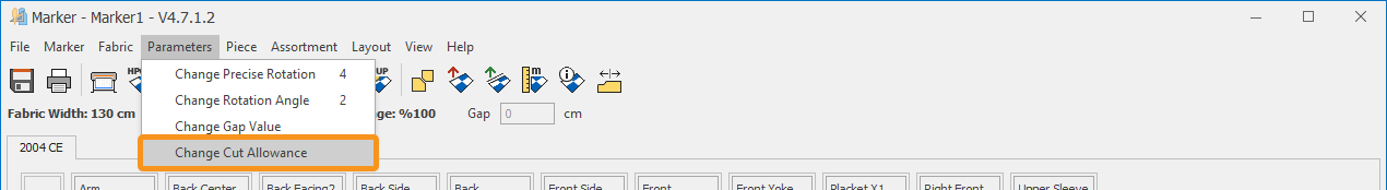 1.) In the Marker screen, click Parameters > Cutting Allowance ![]()