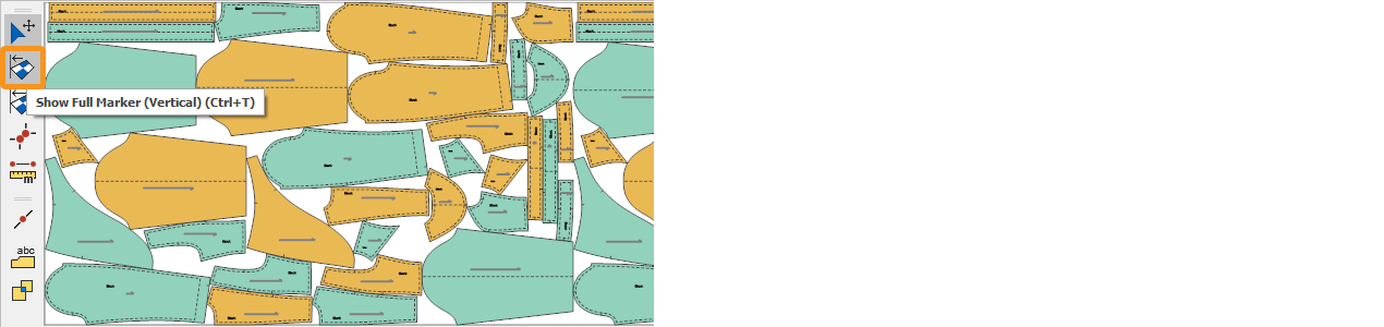 icon displays the marker according to its width (fabric width). (Default shortcut: Ctrl+T)