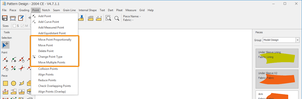 - In the Pattern Design screen, click on the Multiple Point Move option in the Point menu.