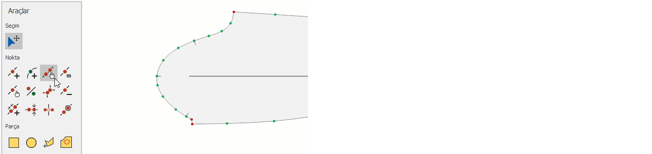 This tool is used to move a point to the desired location on the part line in the Pattern Design window.