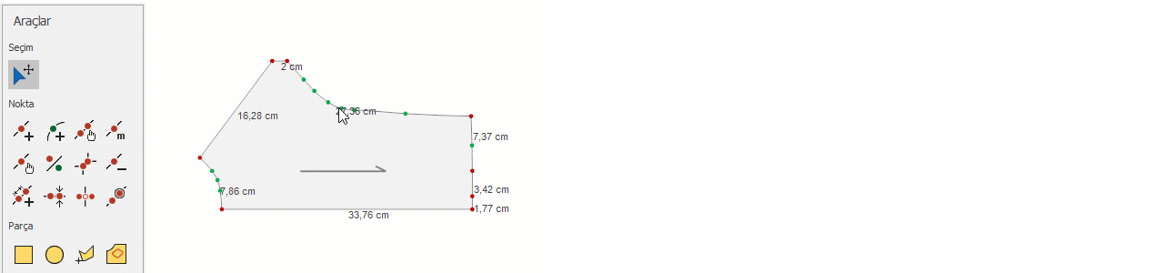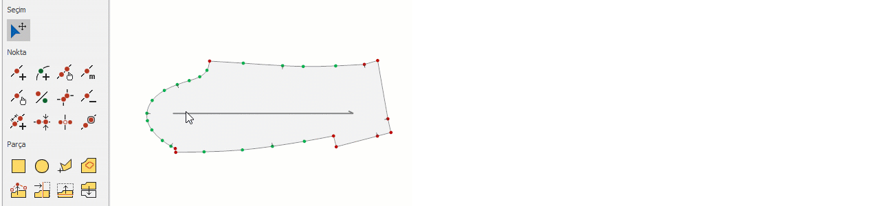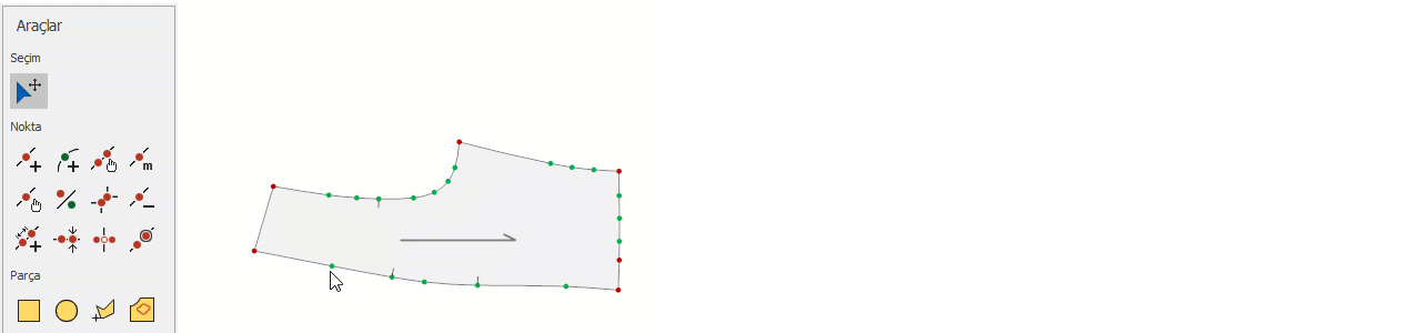 In the Pattern Design screen, this tool is used to move a point and/or points to the desired location on the part line.