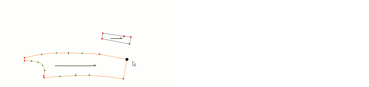 In the newly merged piece, the straight grain of the piece with Point 1 selected is assigned as the default, and the straight grain of the piece with Point 2 selected is assigned as the secondary straight grain.