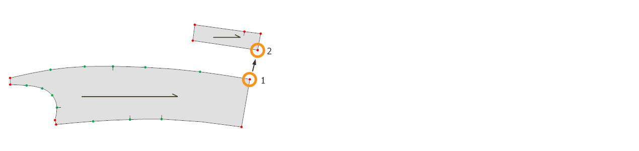 2.) Select the merging point of the first piece (Point 1), then select the merging point of the second piece (Point 2).