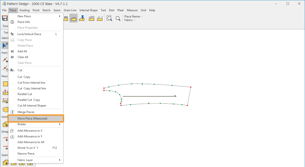2.) From the Pieces menu, click Move Piece (Measured)