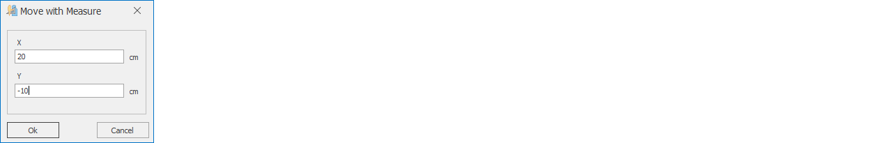 3.) In the window that opens, enter the X and/or Y coordinate values for moving the piece (for example: X = 20 cm, Y = -10 cm).