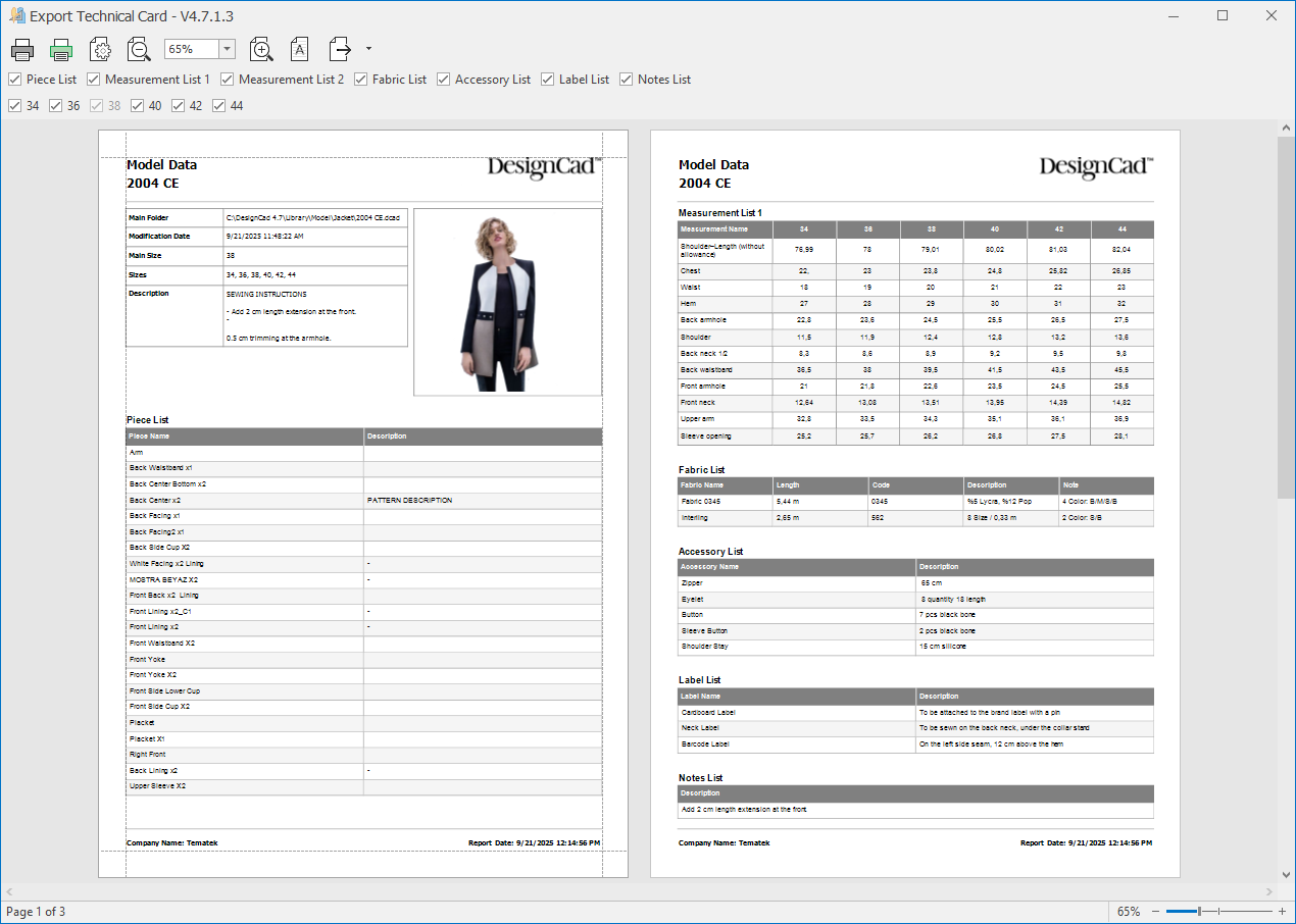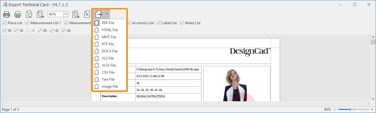 This is the process of sending the Technical Sheet file to the printer or saving it in different formats.
