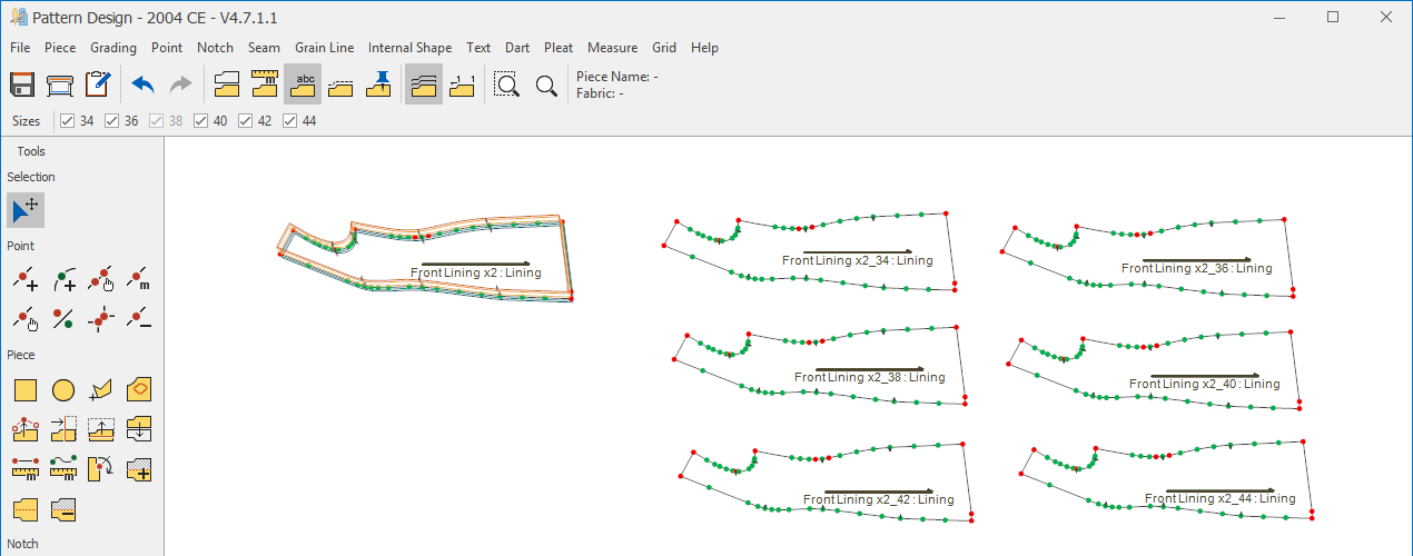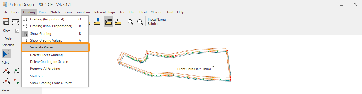 1.) In the Pattern Design screen, select the piece to be separated into grades.