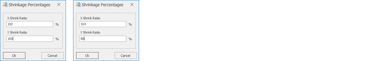 3.) In the window that opens, enter the desired ease/reduction values for the piece in the X and Y fields as percentages. The default value for both X and Y is 100%.