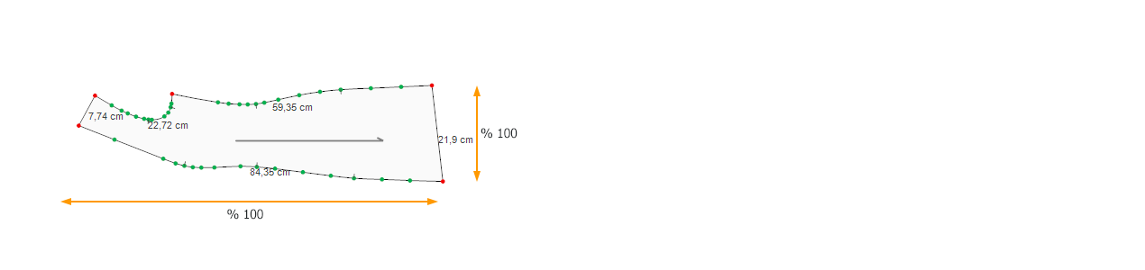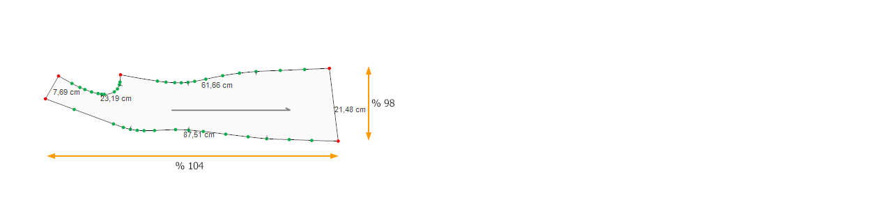 For example, if a piece requires 4% reduction in length and 2% ease in width, enter 104 for X (length) and 98 for Y (width), based on the piece’s orientation on the screen.