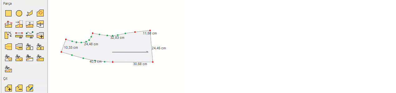 icon from the Pieces menu. - A line along the Y-axis appears on the piece. Hold any point on the desired side of this line with the mouse.