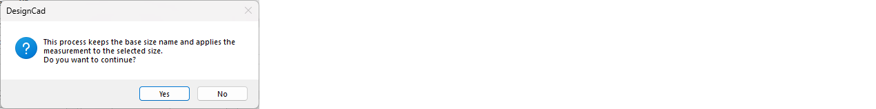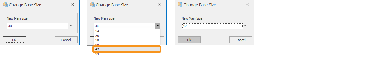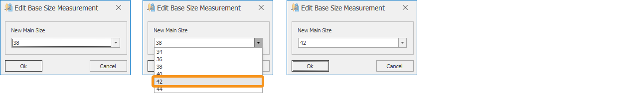 This operation transfers the measurement of the selected size to the main size without changing the main size name, and the series increases or decreases according to the new size arrangement.