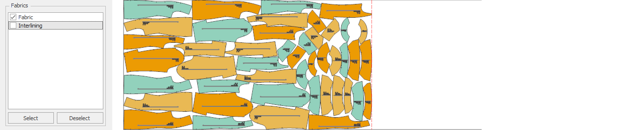 From the Fabrics section, select the fabrics to be included in the marker. (By default, all fabrics are selected.)