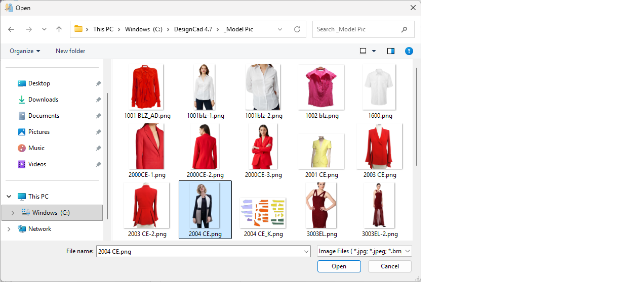 2.) In the opened window, select the image to be added and click Open to insert it into the Technical Sheet.
