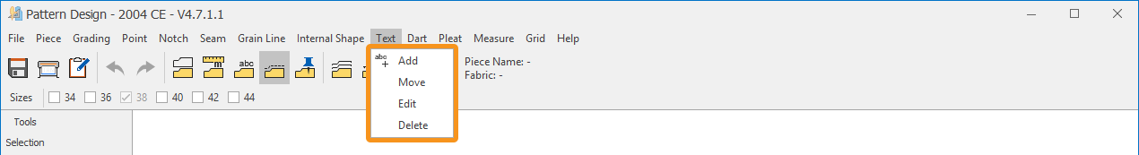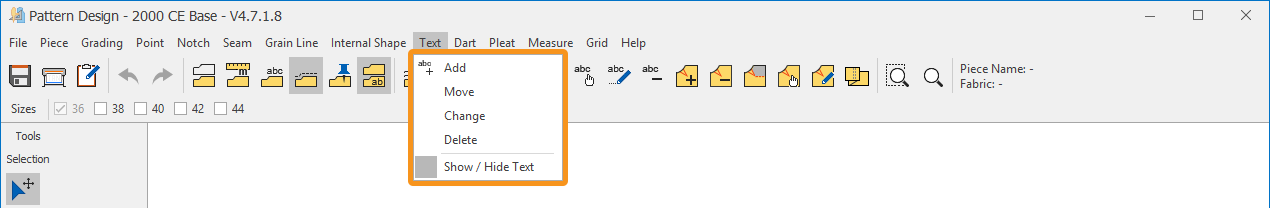 Follow these steps to delete text placed inside a piece: