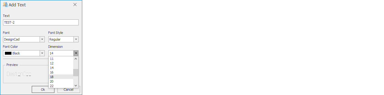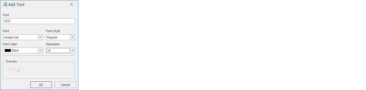 - From the Font section, select the desired font. (In plotter output, the standard DesignCad font is printed.)