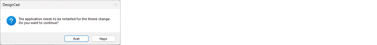 The desired theme is selected and confirmed with Save. DesignCad closes and reopens with the colors of the selected theme.
