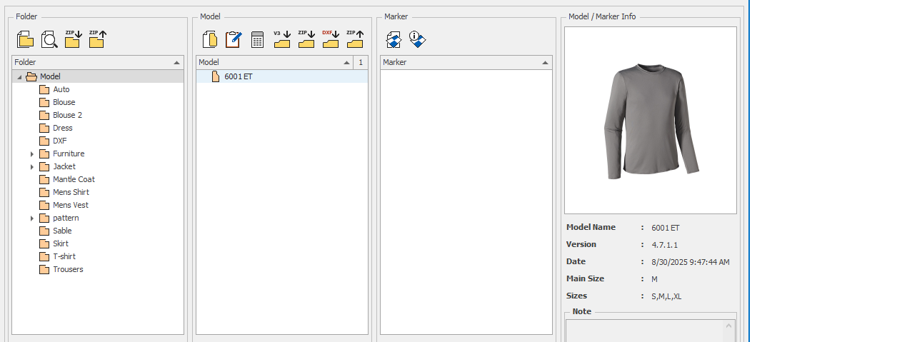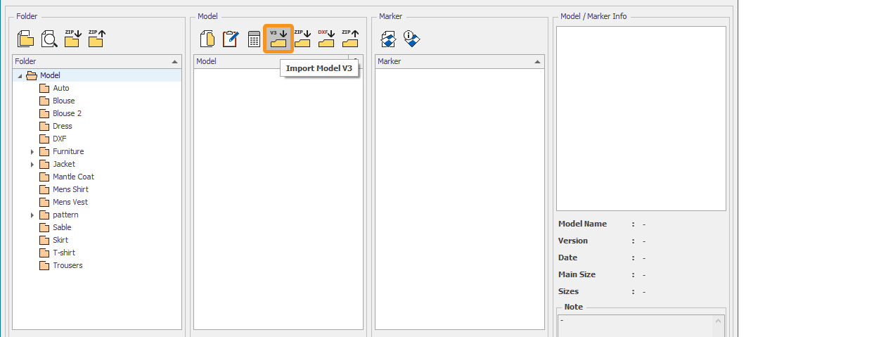 1.) In the main screen, select the folder where the model will be transferred (or create a new folder).