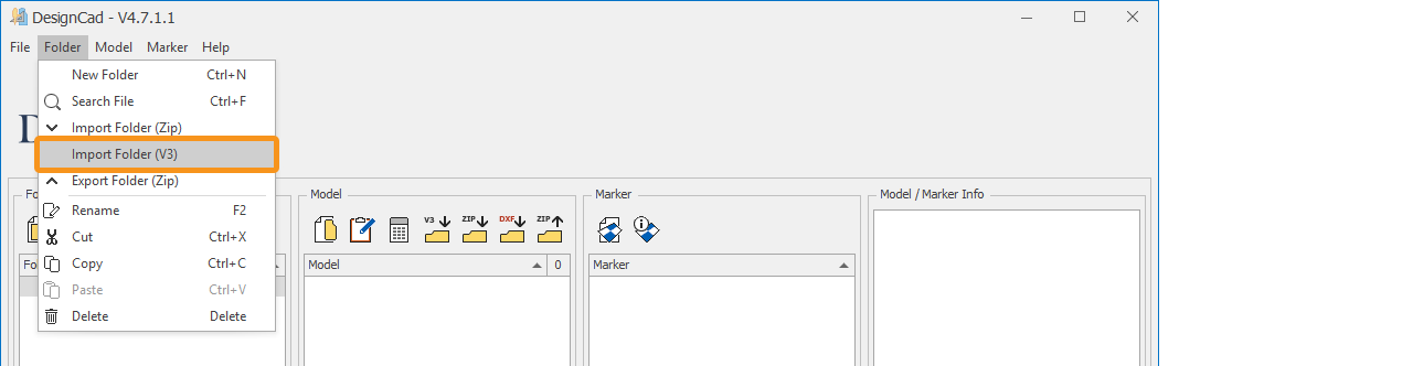 Transferring a Model Folder from DesignCad V3 to V4.7