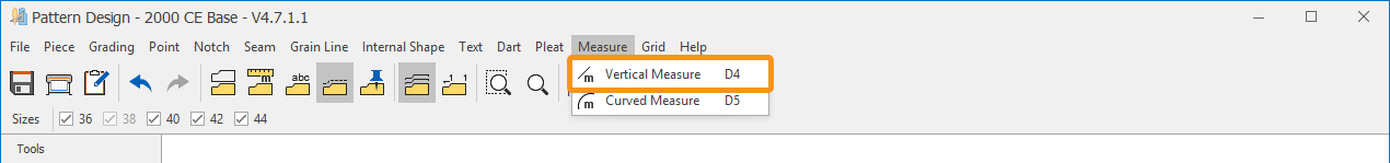 1.) In the Pattern Design screen, select Measure > Vertical Measure ![]()