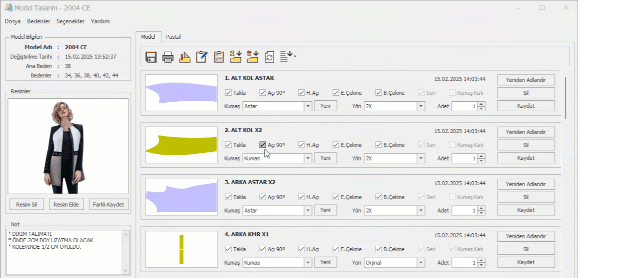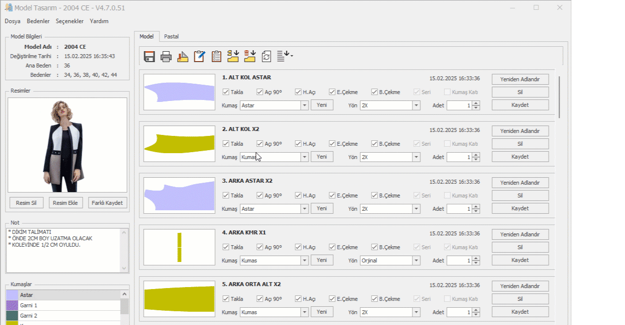 Tüm bu işlemlerin sonunda da modele ait teknik kart ve pastal dosyaları yanlış bir imalata sebep olmamak adına otomatikman silinecektir.