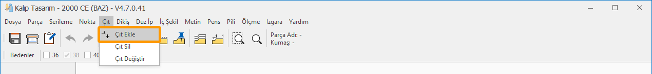 1.) Kalıp Tasarım ekranında, Çıt menüsüne tıklanarak Çıt Ekle