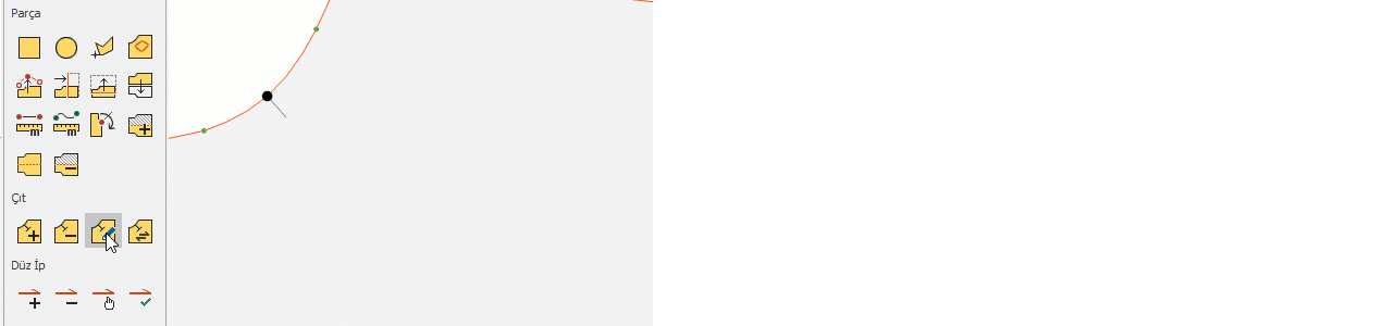 Kalıp Tasarım ekranında, parçanın istenilen noktasına çıt eklemek için şu adımlar izlenir: