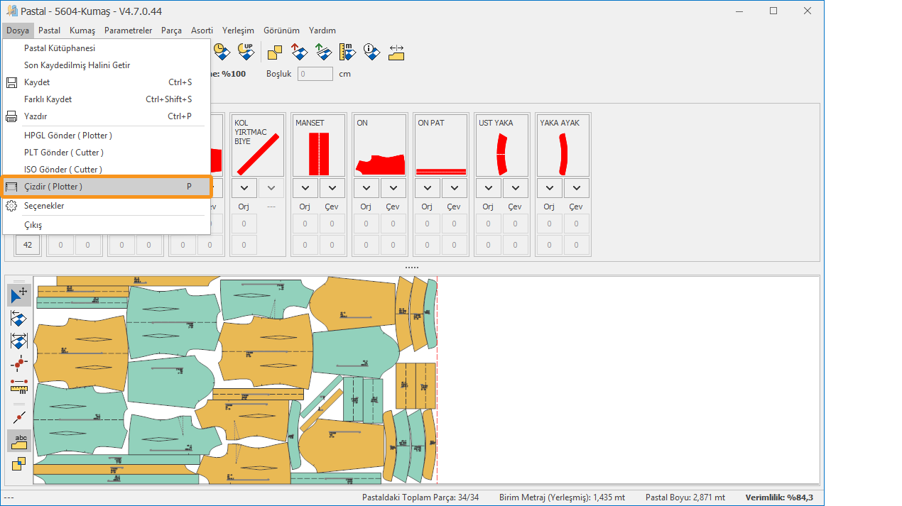 Hazırlanan pastal dosyasının plotter (çizim) makinasında çizimini yapmak için kullanılır.