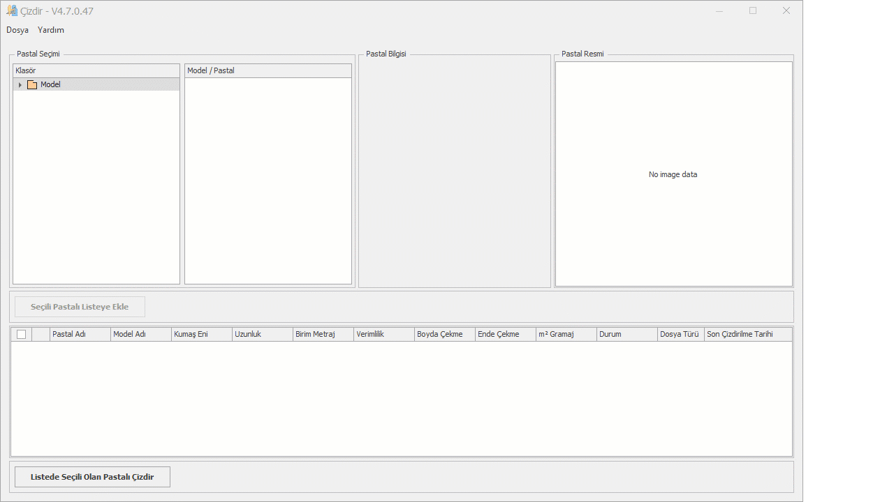 Klasör seçildikten sonra Model/Pastal sütununda model ismine tıklanır ve açılan pastal listesinden pastal seçilir.