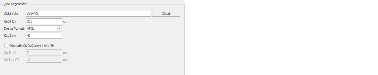 Çizici Seçenekleri bölümünden çizici (plotter) ayarları yapılır.
