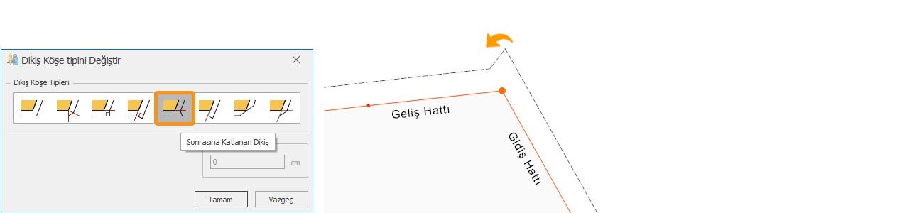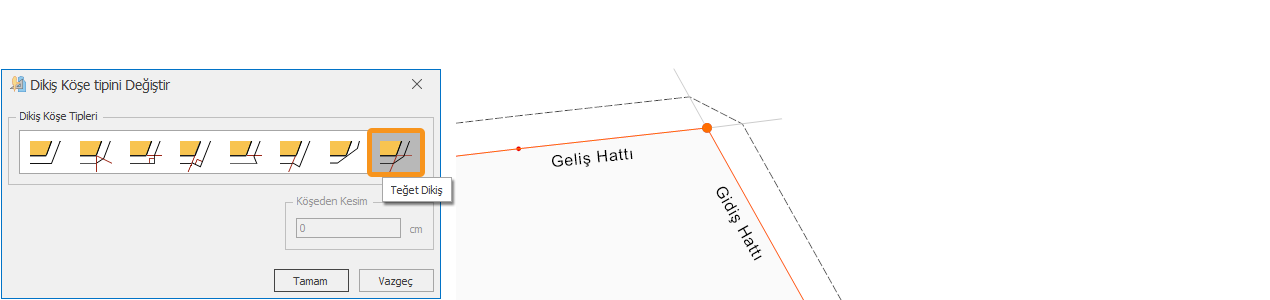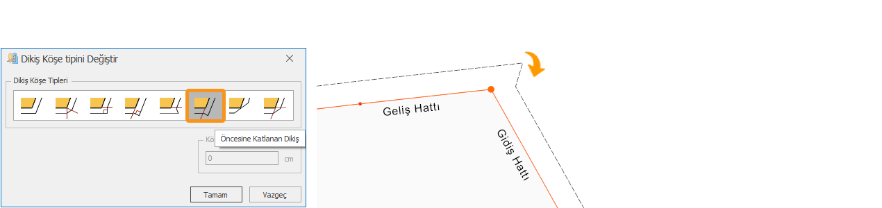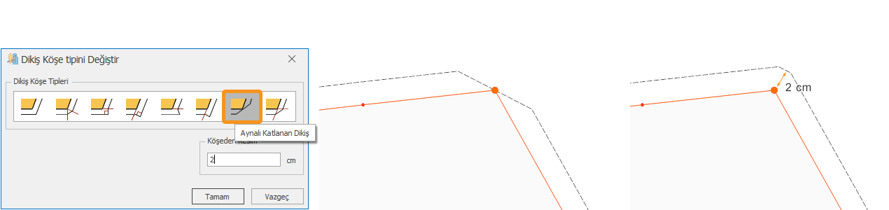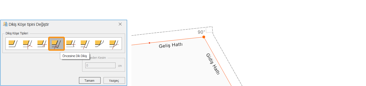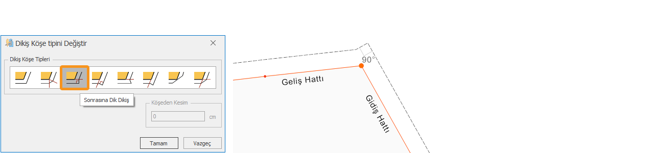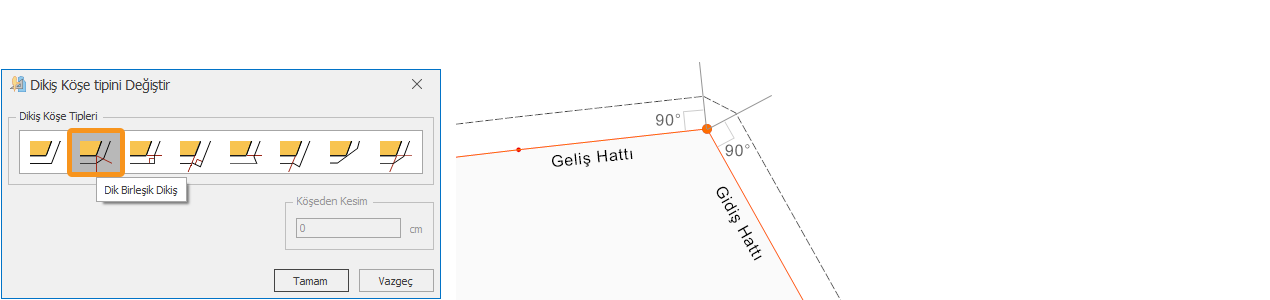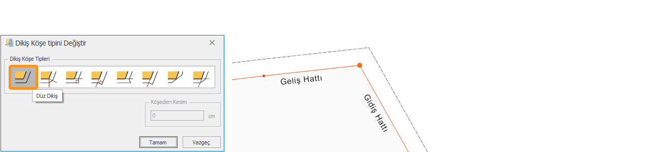 3.) İstenen köşe tipi seçildikten sonra Tamam butonu ile onaylanır.