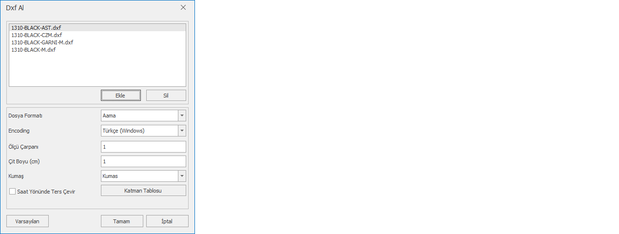 Farklı CAD yazılımlarında hazırlanmış DXF formatındaki kalıpların DesignCad yazılımına aktarılması için aşağıdaki adımlar izlenmelidir: