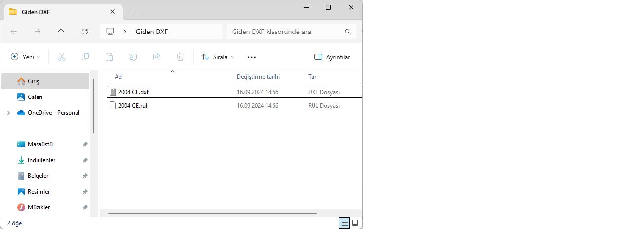 | Ölçü Dosyası | Eğer hazırlanan DXF dosyasına seri (ölçü) dosyası da eklenmek isteniyorsa, ilgili kutucuk işaretlenmelidir. Bu durumda, DXF dosyasına ek olarak, seri değerlerini içeren bir seri dosyası da oluşturulur. Bu dosya, "dosya ismi.rul" formatında kaydedilecektir.