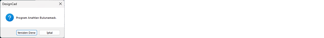 1.) DesignCad lisans anahtarınızın bilgisayarınıza takılı olup olmadığını kontrol edin.