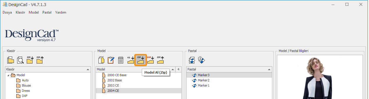 Açılan pencerede DesignCad yazılımının çalıştığı klasör içinden Recycle/Model klasörü seçilir. (varsayılan yol C:\DesignCad 4.7\Recycle\Model)