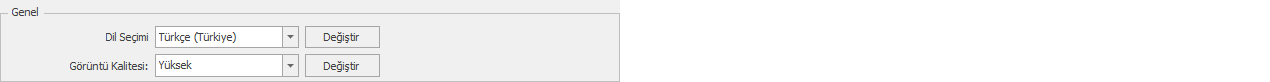 Genel bölümünde dil ve görüntü kalitesinin ayarlandığı bölüm yer alır.