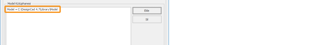 Model Kütüphanesi bölümünde kullanılacak DesignCad kütüphanelerinin yolu seçilir.